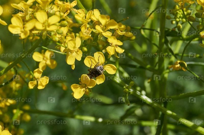 В лужайке цветет обыкновенная барбарея (лат. Barbarea vulgaris)