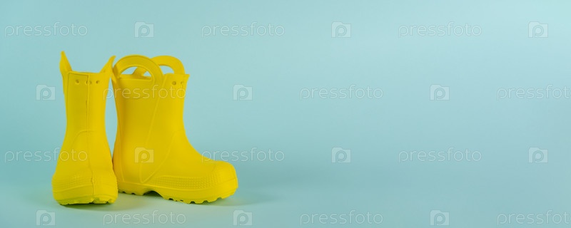 Желтый детский баннер в резиновых сапогах