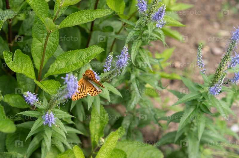 Оранжевая бабочка на цветах