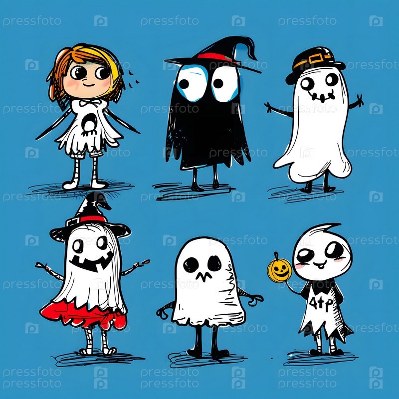 Набор каракулей с нарисованными вручную призраками Хэллоуина