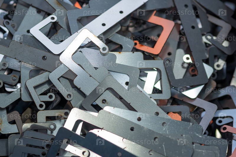 Абстрактный промышленный фон, некоторые металлические детали лежат оптом