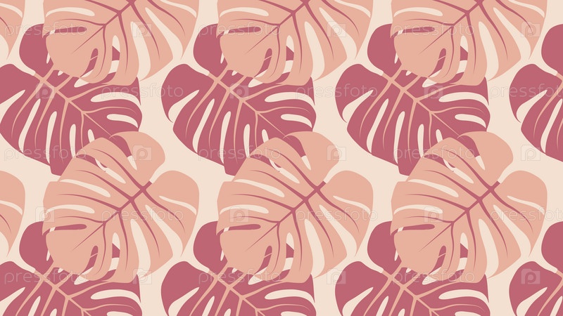 Прямоугольный фон с листьями монстеры в цвете пыльная роза