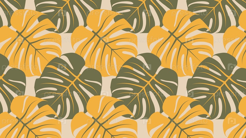 Прямоугольный фон с повторяющимся узором из листьев монстеры