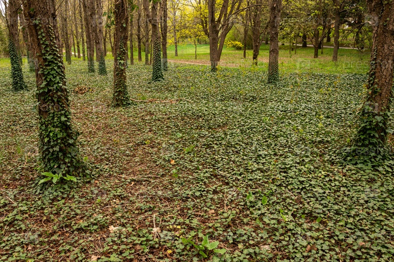 Фотография плюща на лесной подстилке во время пасмурной погоды