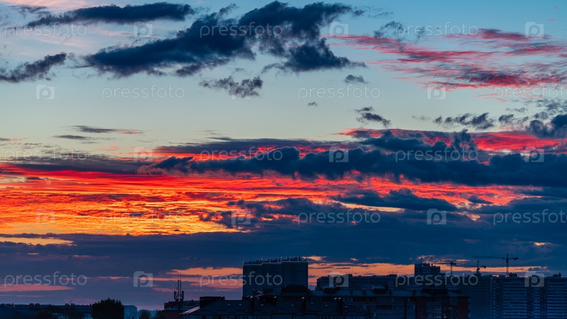 Красочное небо над городом в момент восхода солнца