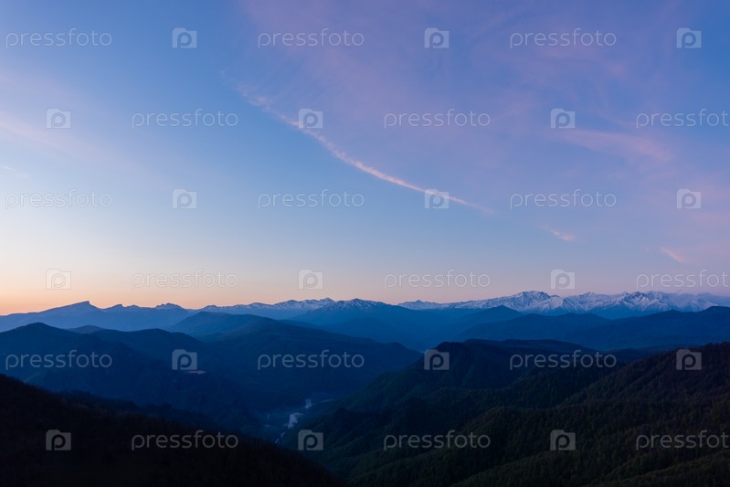 Горный хребет и долина в предрассветных сумерках