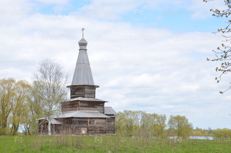 Церковь Успения Богородицы из села Курицко Новгородского района - постройка XVI века, музей народной деревянной архитектуры Витославлица на берегу озера Мячино в Великом Новгороде