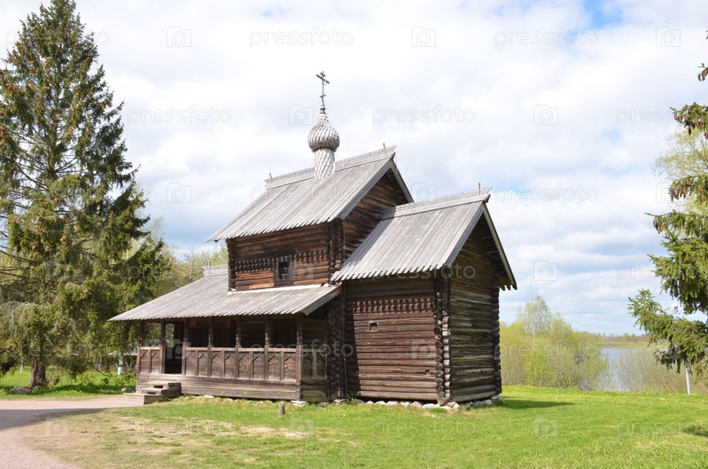 Церковь Успения Богородицы из деревни Никулино Любытинского района - постройка XVI века, музей народной деревянной архитектуры Витославлица на берегу озера Мячино в Великом Новгороде