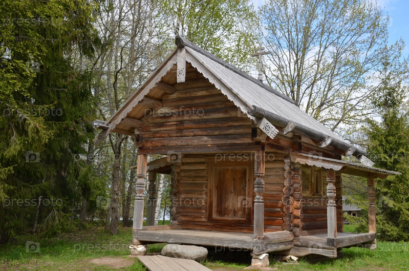 Часовня Петра и Павла из деревни Гар Маловишерского района - постройка XVII века, музей народной деревянной архитектуры Витославлицы на берегу озера Мячино в Великом Новгороде