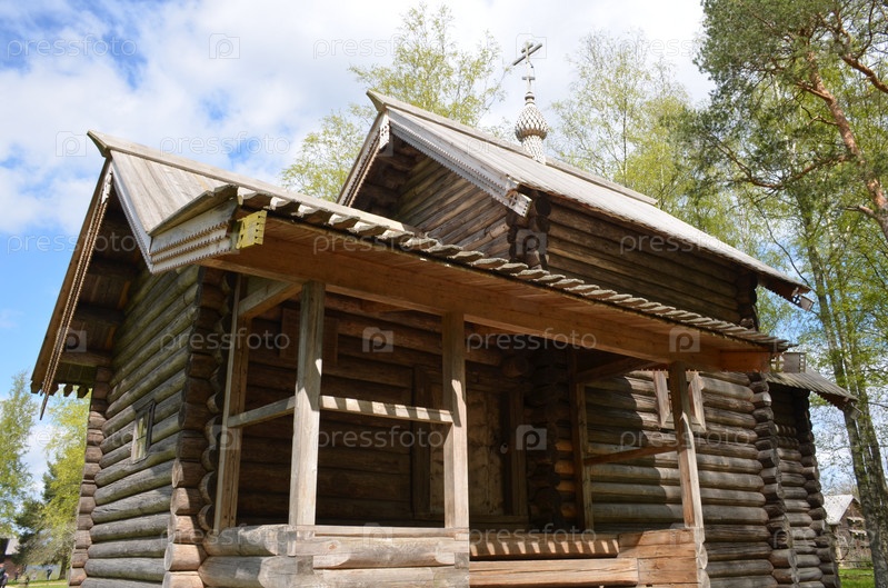 Церковь Троицы из Реконского монастыря Любытинского района - здание XVII века, музей народной деревянной архитектуры Витославлица на берегу озера Мячино в Великом Новгороде