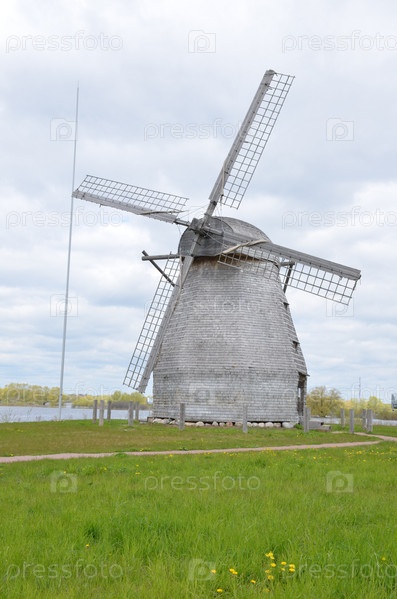 Ветряная мельница из деревни Ладощино Солецкого района постройка начала XX века, музей народной деревянной архитектуры Витославлица на берегу озера Мячино в Великом Новгороде