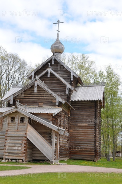 Церковь Николая Чудотворца из Николаевского Крутецкого монастыря постройка XVII века, музей народной деревянной архитектуры Витославлицы на берегу озера Мячино в Великом Новгороде