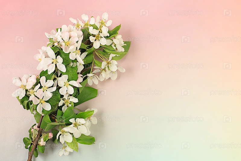 Элегантный фон с цветущими ветвями яблони с местом для текста, шаблоном для дизайна, баннером, абстрактной цветочной композицией, цветочной праздничной открыткой, концепцией летнего приветствия, избирательным фокусом
