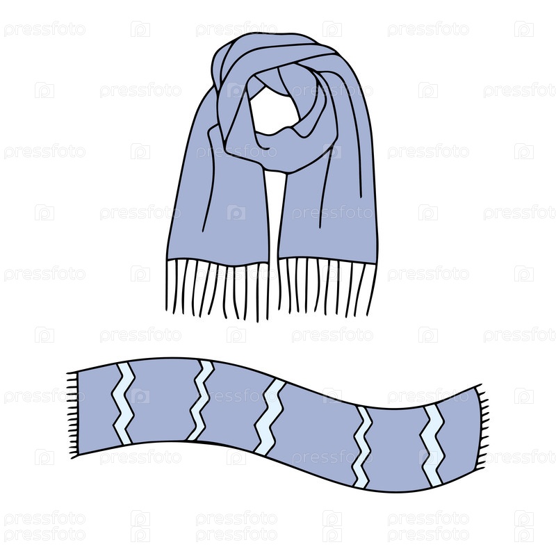 Набор теплых вязаных шарфов в стиле дудл. Зимние аксессуары ручной работы. Векторная иллюстрация