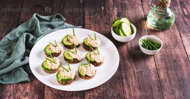 Вкусные бутерброды на ржаном хлебе с огурцом, икрой мойвы и зеленым луком веб-баннер