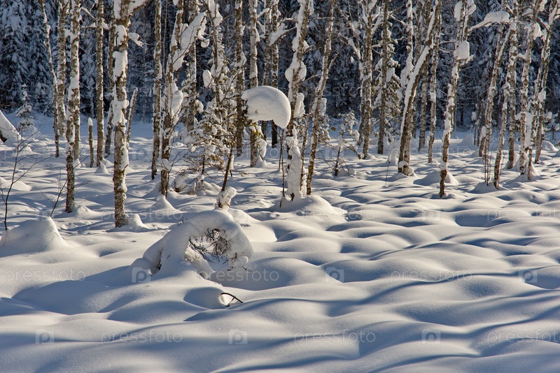 Россия. Кузнецкий Алатау. Снежные сугробы перспективе вдоль зимней таежной дороги
