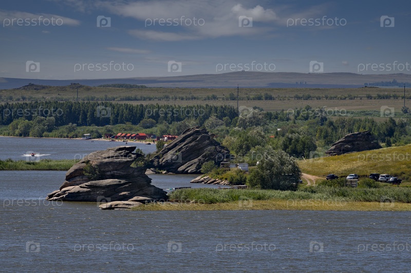 Россия. Алтайский край. Живописные берега озера Колывань окружена причудливыми скалистыми выступами, расположенными недалеко от границы с Казахстаном