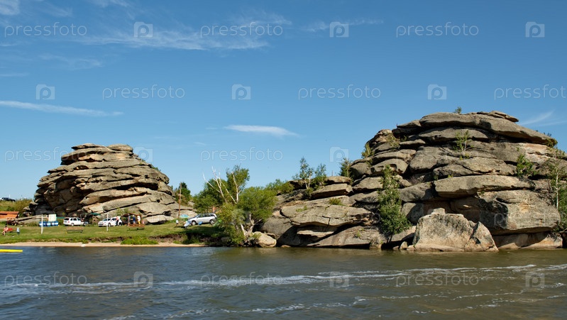 Россия. Алтайский край. Живописные берега озера Колывань окружена причудливыми скалистыми выступами, расположенными недалеко от границы с Казахстаном