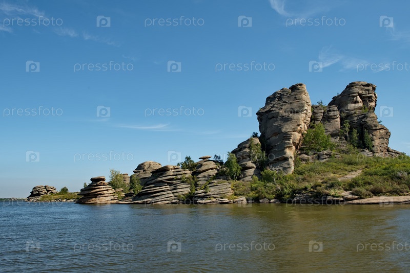 Россия. Алтайский край. Живописные берега озера Колывань окружена причудливыми скалистыми выступами, расположенными недалеко от границы с Казахстаном