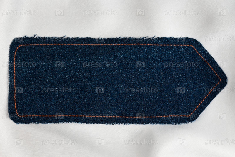 Указатель из джинсовой ткани с желтой строчкой на белом шелке