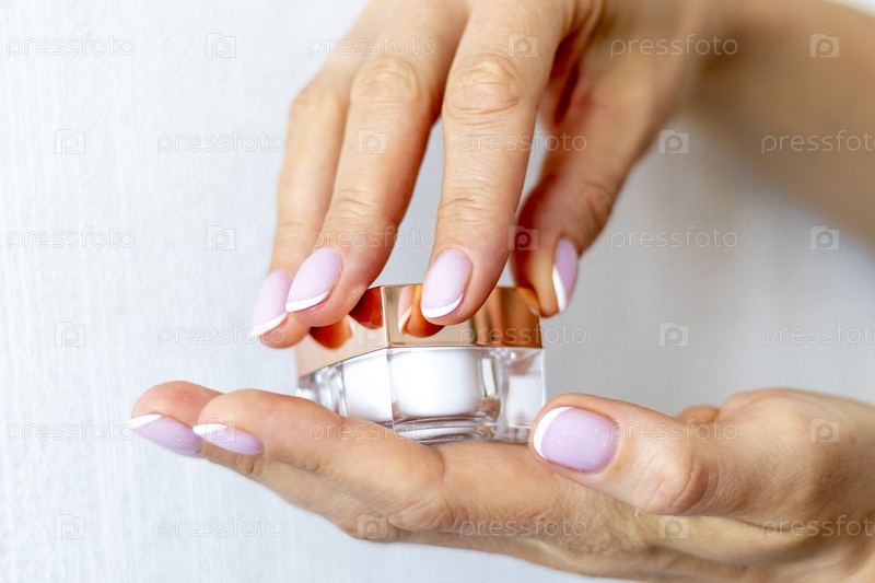 Снимок руки красивой женщины, держащей бутылку средства по уходу за кожей. Мода