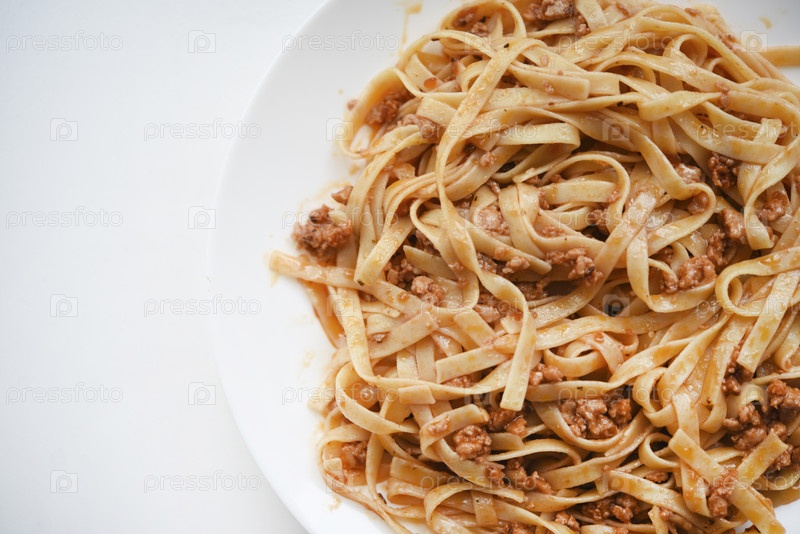 Паста с мясом на тарелке. Вкусная лапша с мясом. Итальянская кухня