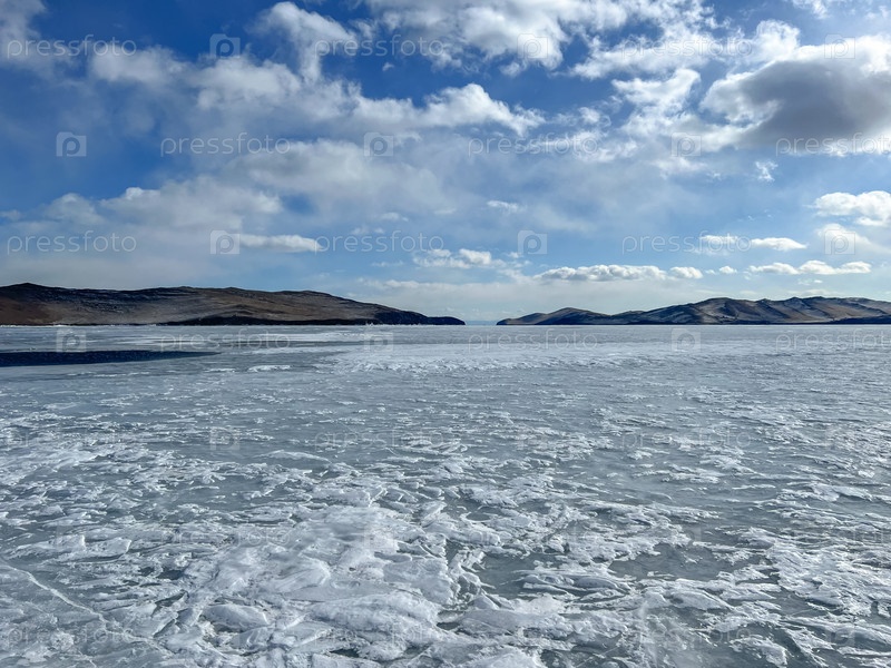 Зимний пейзаж замерзшего озера Байкал, красивая естественная фигура на льду