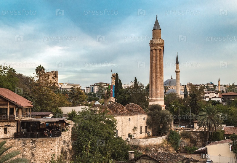 Вид на старый город Калеичи в Анталии. Минареты и крыши