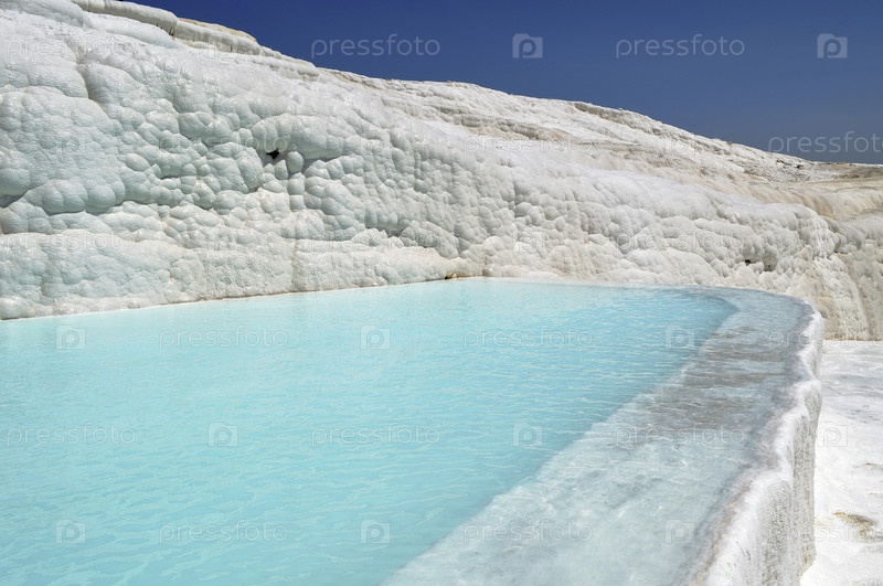 Травертиновая ванна, наполненная минеральной водой в Памуккале