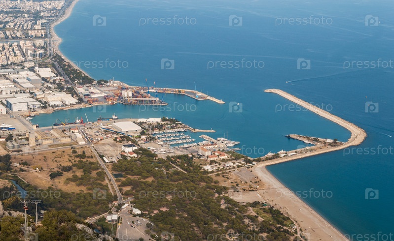 Вид на порт, море и город Анталию с горы Тунектепе