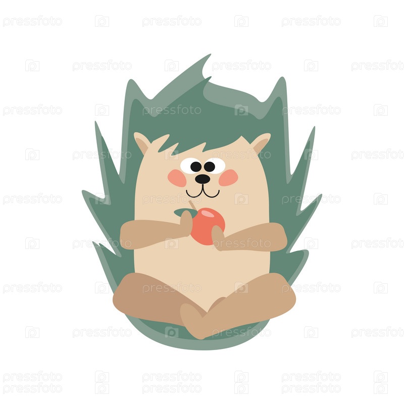 Милый забавный ежик с яблоком