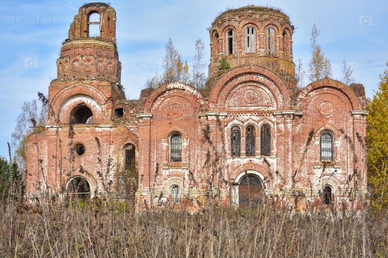 Заброшенная христианская церковь из красного кирпича в глубине России, заброшенное здание в пустыне