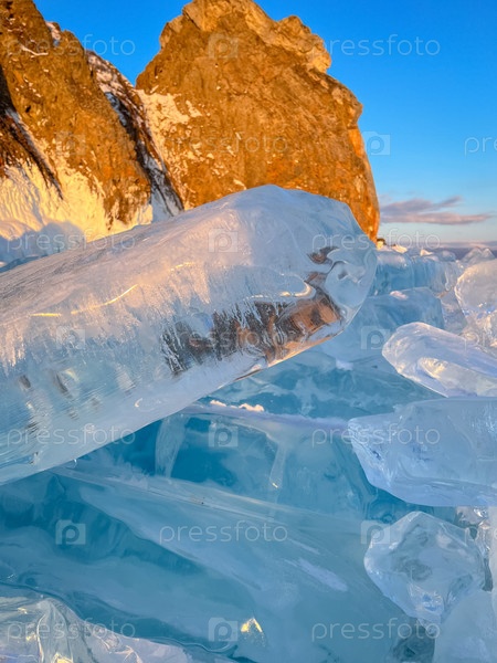 Прозрачная льдина крупным планом