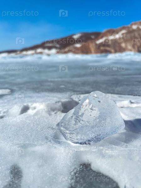 Прозрачная льдина крупным планом