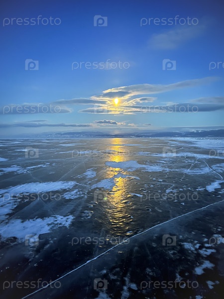 Зимний пейзаж замерзшего озера Байкал, красивая естественная фигура на льду