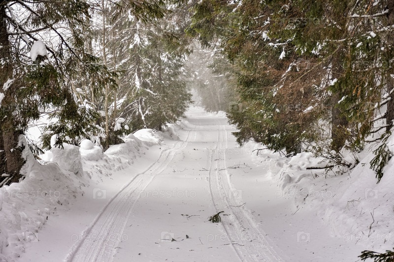 Зима в еловом лесу, ели покрыты белым пушистым снегом. Селективный фокус. Зимний пейзаж со снегом и деревьями. Заснеженные деревья в лесу зимой