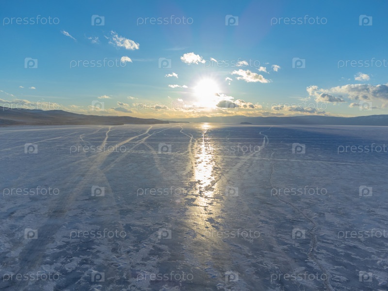 Зимний пейзаж замерзшего озера Байкал, красивая естественная фигура на льду