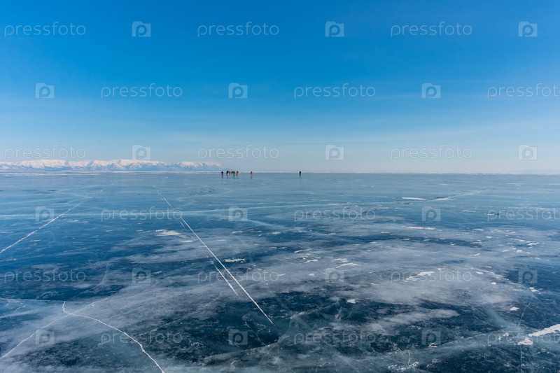 Зимний пейзаж замерзшего озера Байкал, красивая естественная фигура на льду