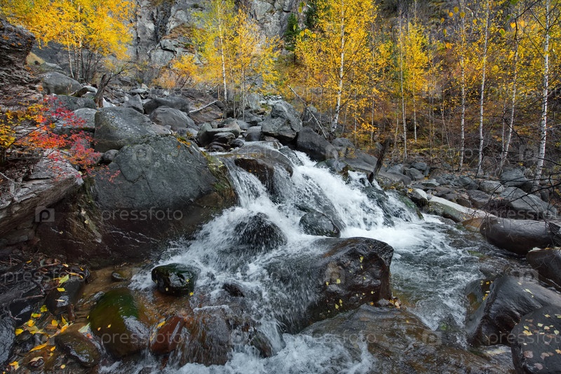 Россия. Россия. Юг Западной Сибири, горный Алтай. Небольшой водопад на реке Кату-ярык в долине реки Чулышман