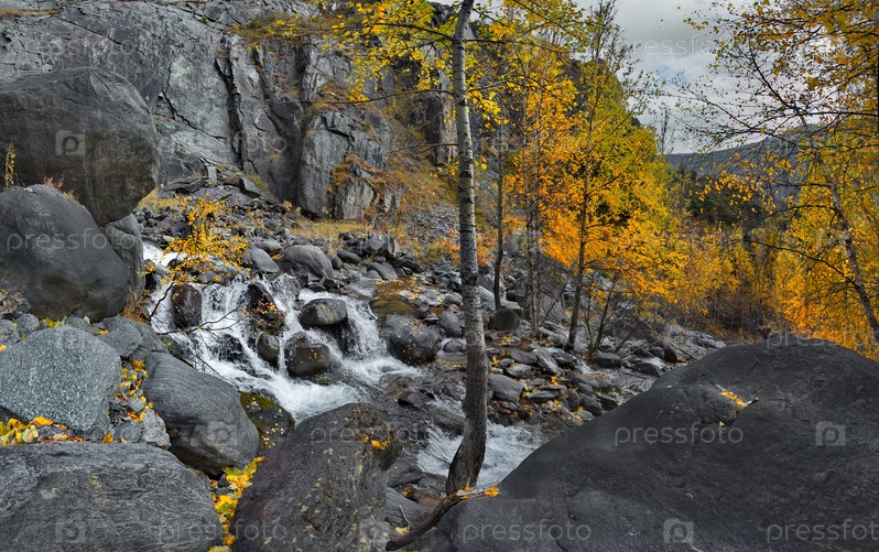 Россия. Россия. Юг Западной Сибири, горный Алтай. Небольшой водопад на реке Кату-ярык в долине реки Чулышман