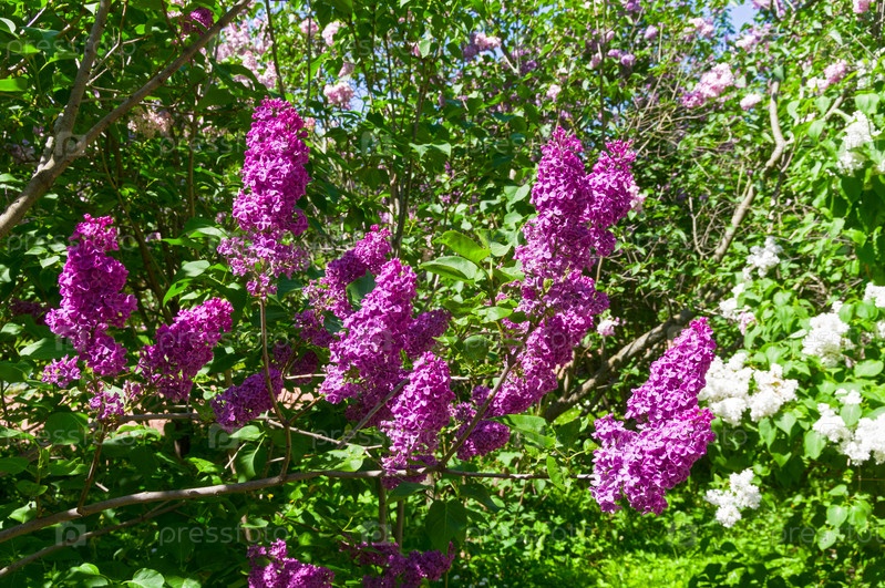 Цветящий сирень сорт 'Ночь (Night) '. Ботанический сад Московского университета. Солнечный день в конце мая. Сорт 'Найт' выведен в США в 1941 году