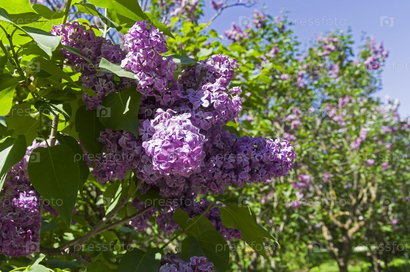 Цветящий сирень сорта 'Кристофор Колумб'. Ботанический сад Московского университета. Солнечный день в конце мая. Сорт 'Кристоф Колумб' выведен во Франции в 1905 году