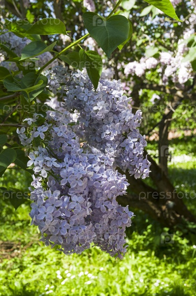 Цветящий сирень сорт 'Небосвод (Фирмамент)'. Ботанический сад Московского университета. Солнечный день в конце мая. Сорт 'Фирмамент' выведен во Франции в 1932 году