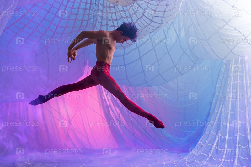 Мужчина в красных штанах танцует в воздухе
