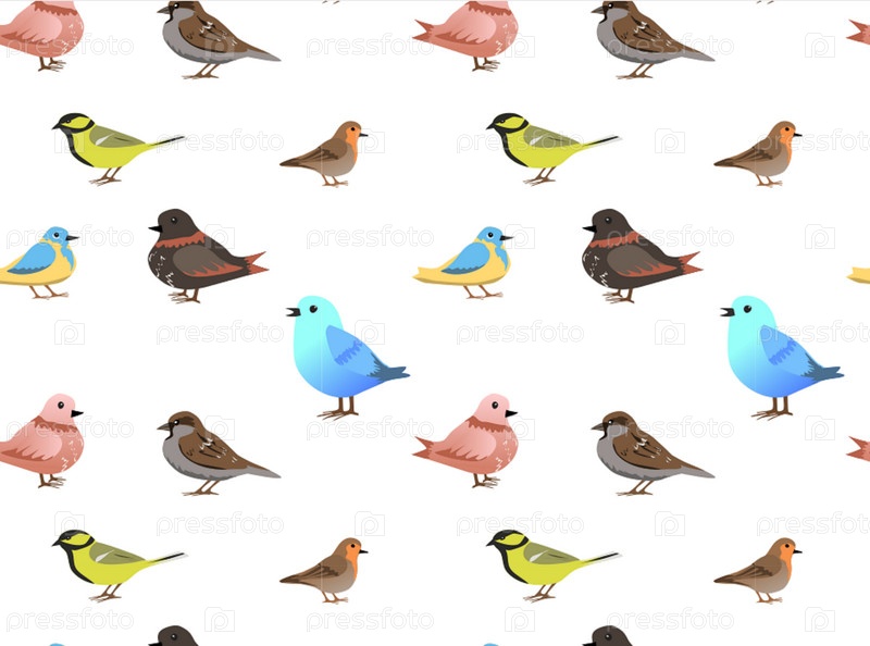 Бесшовные обои с птицами в реалистичном и мультяшном стиле смешаны