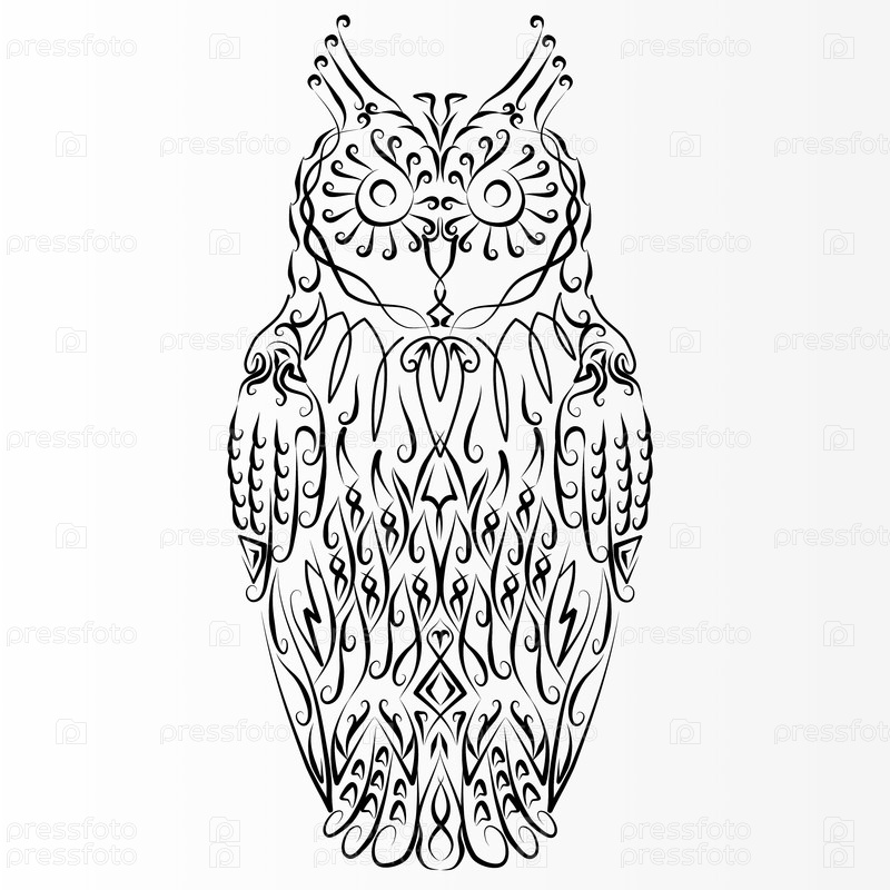 Витой орнамент совы, украшенный мозаикой из завитков виноградной лозы из разных символов