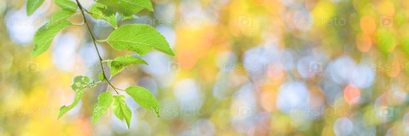 Флора абстрактное изображение зеленых листьев, размытый фон с круглыми светлыми пятнами
