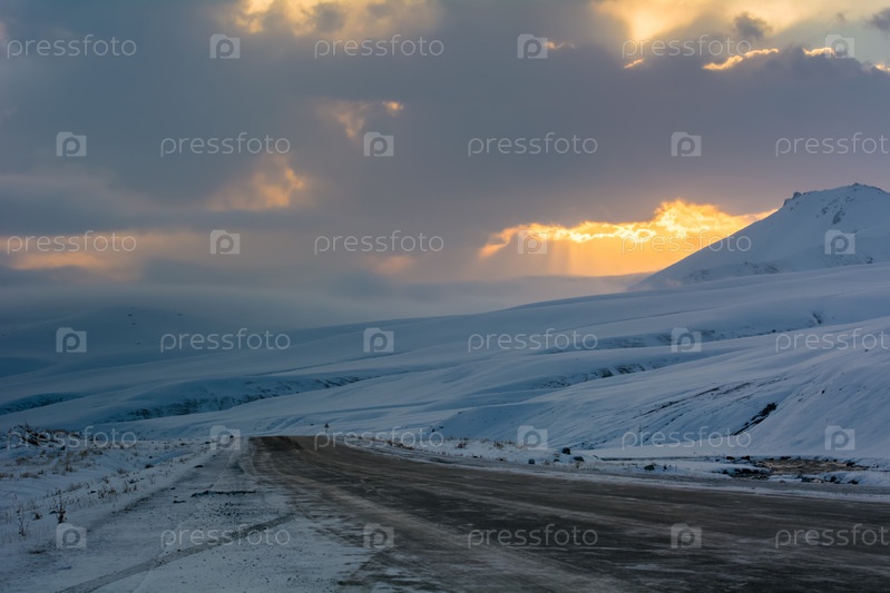 Бишкек-Ошское шоссе, восход солнца в Суусамырской долине, Кыргызстан