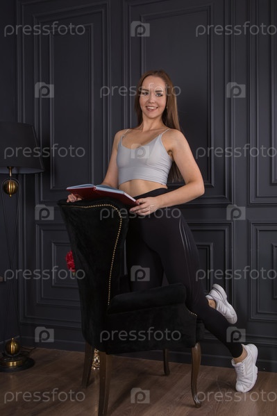 Девушка европейской национальности, фитнес-тренер с блокнотом в руке