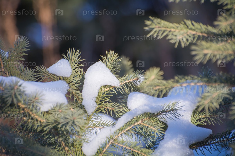 Зеленые ветки елки под снегом